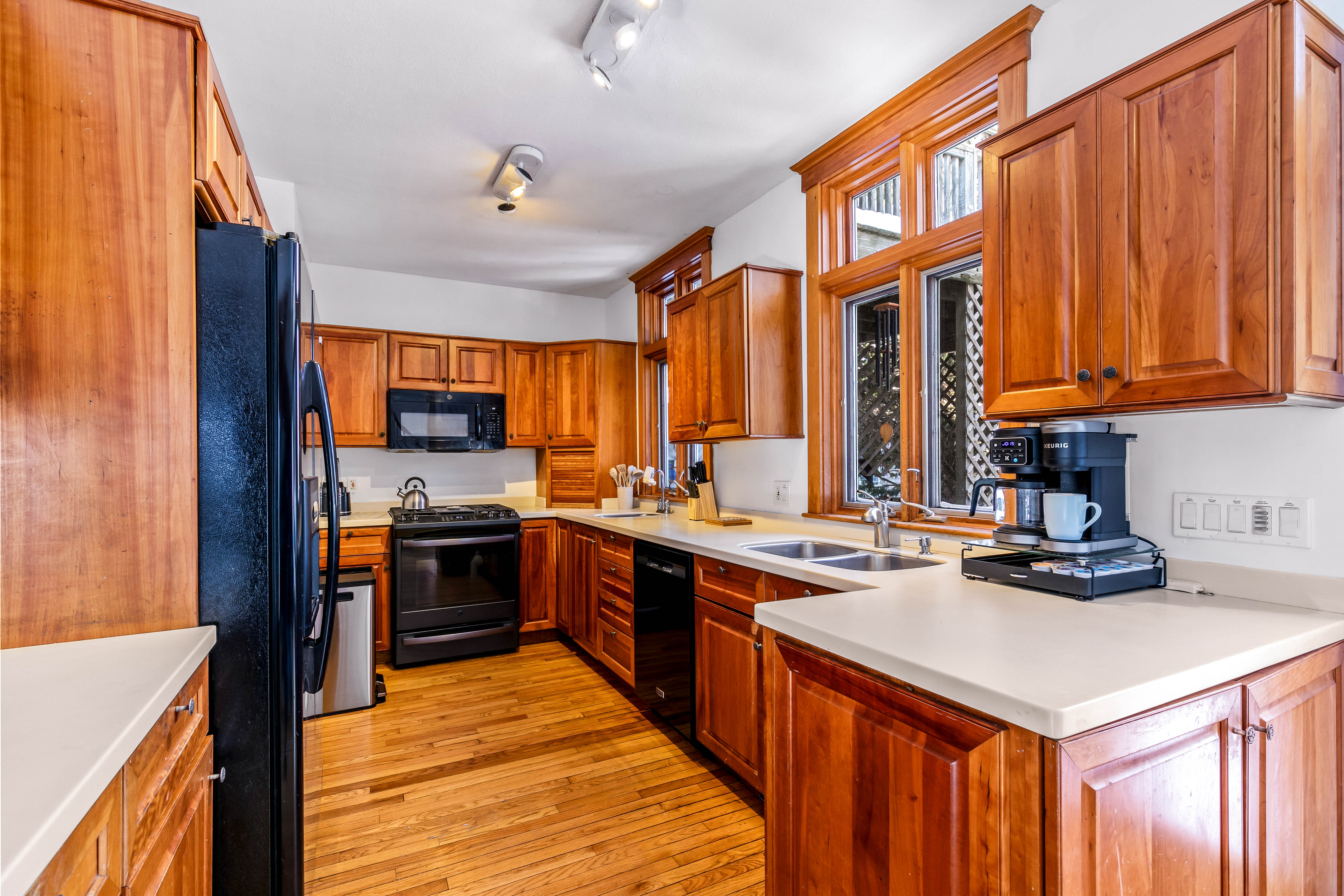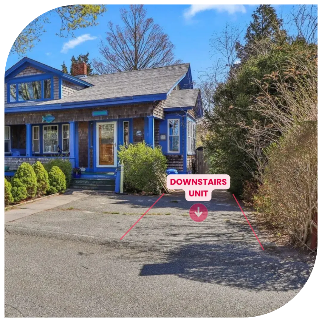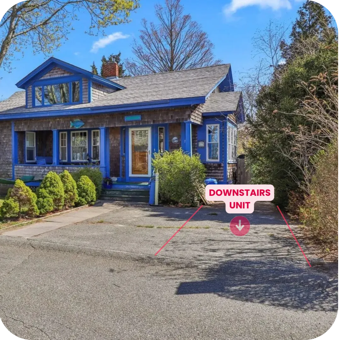 Nestled in a traditional two-unit home, this cozy retreat offers a fully equipped kitchen, a private outdoor hot tub, a sun-drenched deck, and a lush yard—ideal for relaxing after a day exploring the shores.